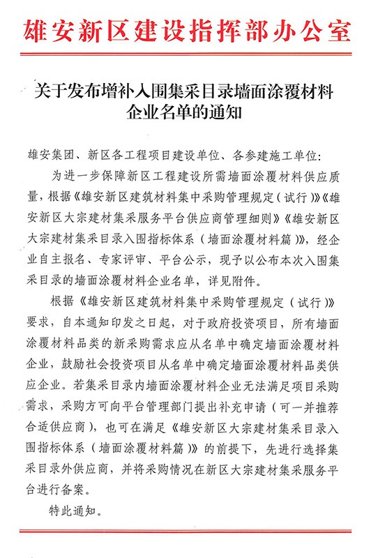 助力雄安建設(shè):晨陽水漆入圍“雄安新區(qū)墻面涂覆材料企業(yè)”名單
